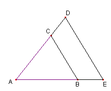 CABRIUのデータD36は、△ADE:△ABC=2:1 になる場合の作図例です。