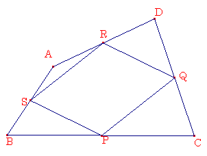 AS:SB=CP:PB=CQ:QD=AR:RDとなる点P,Q,R,Sをとり、図のように、四角形PQRSをつくります。