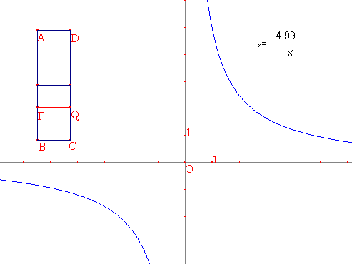左の図の反比例のグラフは、点Pを移動させることによって、比例定数を変えることができます。