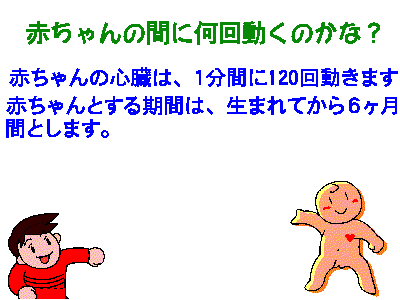 赤ちゃんの心臓は1分間に120回、赤ちゃんとする期間は生後6ヶ月とします。1年は365日とします。