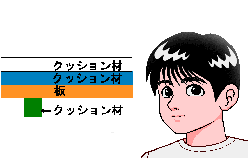 クッション材が下についた板の上に2枚のクッション材を重ねて、最後にきれいなカバーをかけるんだ。