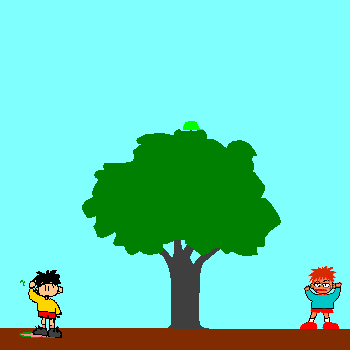 ほぼ、正確にボールを投げられるとしたら、木をはさんで、どのくらい離れたところにいてもらえばいいのだろうか??