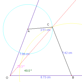 その2つの円の交点Cと頂点Oを通る半直線OCが∠AOBを二等分するようにしよう!