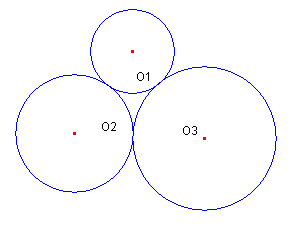 最初に、3点O1、O2、O3があり、その3点を中心として、図のように、互いに外接する円を作図するのには、どのようにしたらよいでしょうか?。