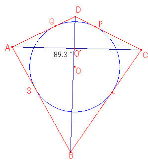 左の図のように円Oに外接する四角形ABCDがある。点P,Q,S,Tは接点とします。
