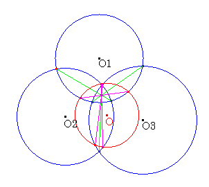 この3つの円と交わり、その3つの円との