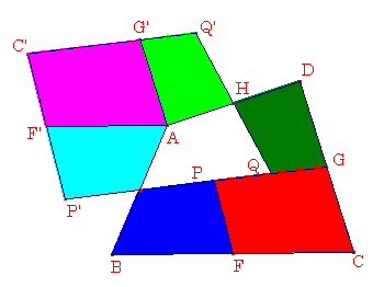 辺AB、辺CDの辺の中点E,Gを結び、線分EGをつくります。その線分上に点P,Qをつくり、辺BC、辺DAの辺の中点F,Hをそれぞれ結び、線分PF、QHをつくり、四角形ABCDを4つに分けます。 四角形PFCGを点Cが点Aに重なるように平行移動します。 四角形PEBFを点Eに対して点対称移動します。 四角形QGDHを点Hに対して点対称移動します。 そのようにしてできた四角形C’P’QQ’は四角形ABCDと面積が等しくなります。 このとき、点P,Qの位置によって、変形した図形はどのような図形になるでしょうか。 また、四角形ABCDの形と、変形した図形はどのような関係があるでしょうか。 |