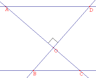図のように、ADとBCは平行であり、ACとBDは垂直になっているとき、OA、OB、OC,ODの間にはどのような関係があるでしょうか。