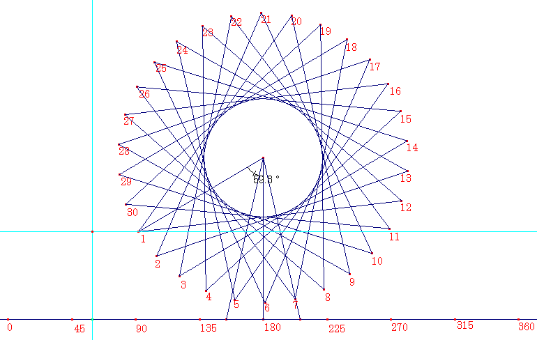 下のメモリは中心角を表します。中心角と「1」の位置はどのような関係があるでしょうか。