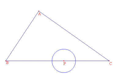 点Pを中心とする円が三角形ABC上を移動するとき、円Pはどのように動くでしょうか。