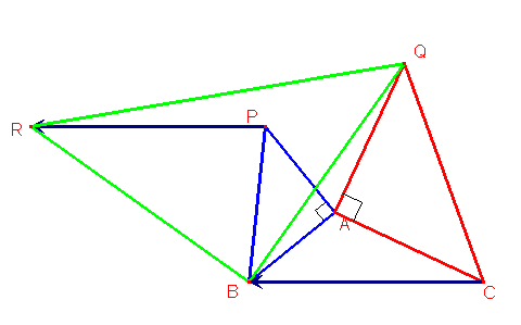 △ABCの辺AB,辺AC上に図のような直角二等辺三角形をつくり,RP//BC,RP=BCとなる点Rを作ります。