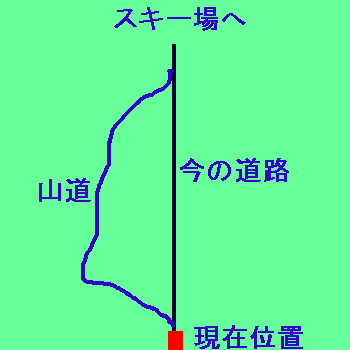 ほら、地図を見てごらん。現在位置が赤いところ。山道は遠回りだけど、信号がないんだよ。交通情報によると、今の道路は、1回につき1分30秒の信号待ちを20回もしながら、走っては止まり、走っては止まりを繰り返して、時速10km行かなくてはならないんだ。合流点までは30kmだ。