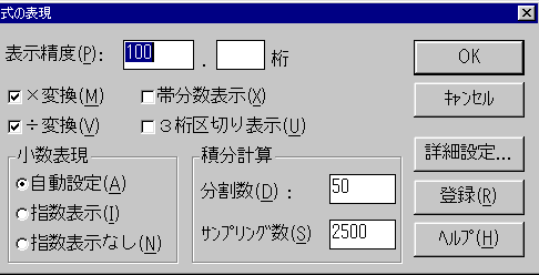 ここで、表示精度などを決めます。表示精度は300桁までです。
