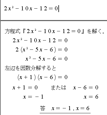 「方程式を解く」を選択すると計算過程とともに結果が表示されます。